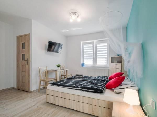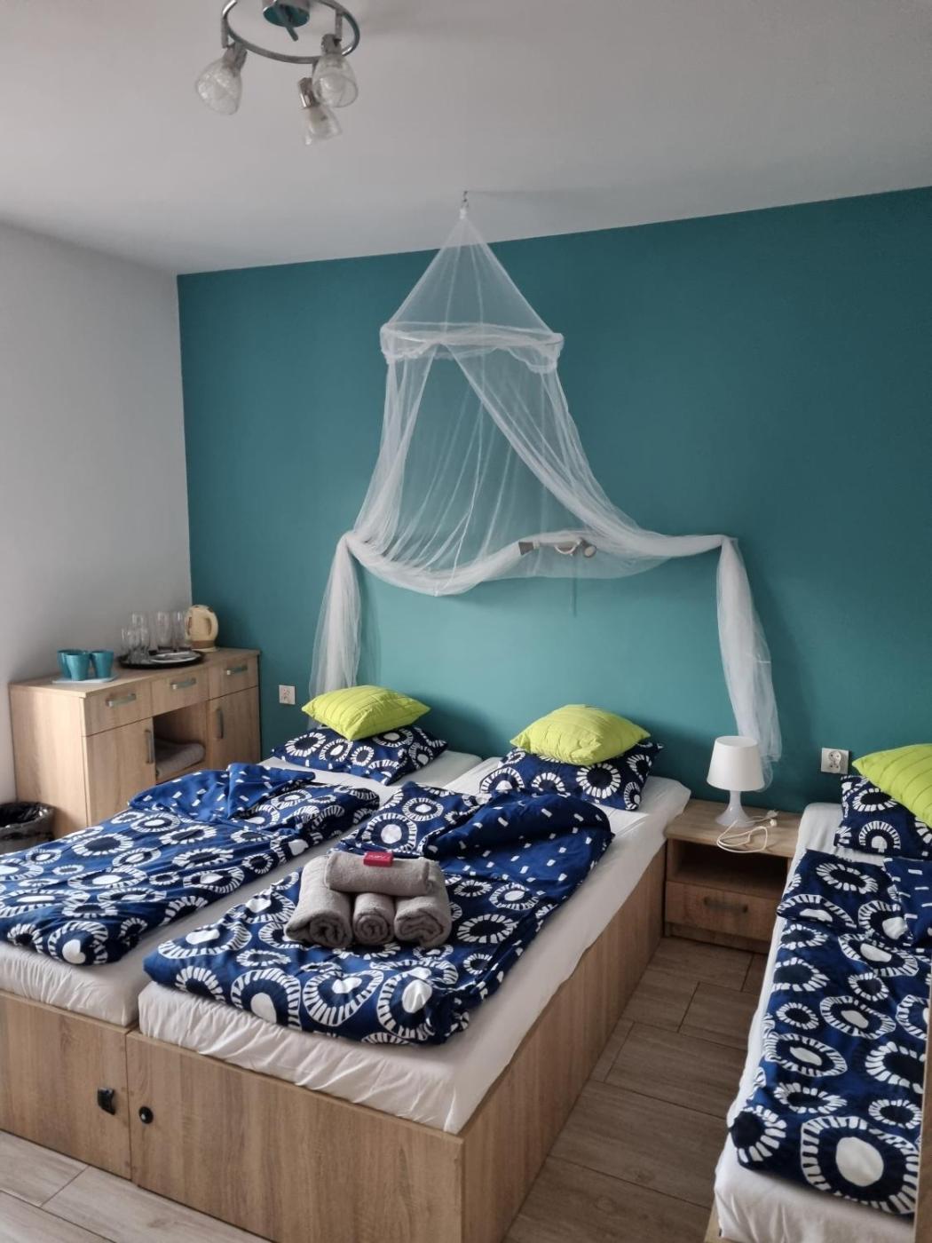 Pokój Czteroosobowy typu Economy. The quadruple room offers a tea and coffee maker, a wardrobe, as well as a private bathroom boasting a shower and a hairdryer. Guests will find a refrigerator, kitchenware, a microwave and a toaster in the well-equipped kitchen. The quadruple room also features a barbecue. This quadruple room has a tiled floor, heating, a flat-screen TV and an outdoor dining area. The unit has 3 beds. Pokój Czteroosobowy - 4 osobowy. Powierzchnia pokoju ok.: 16 mkw.
